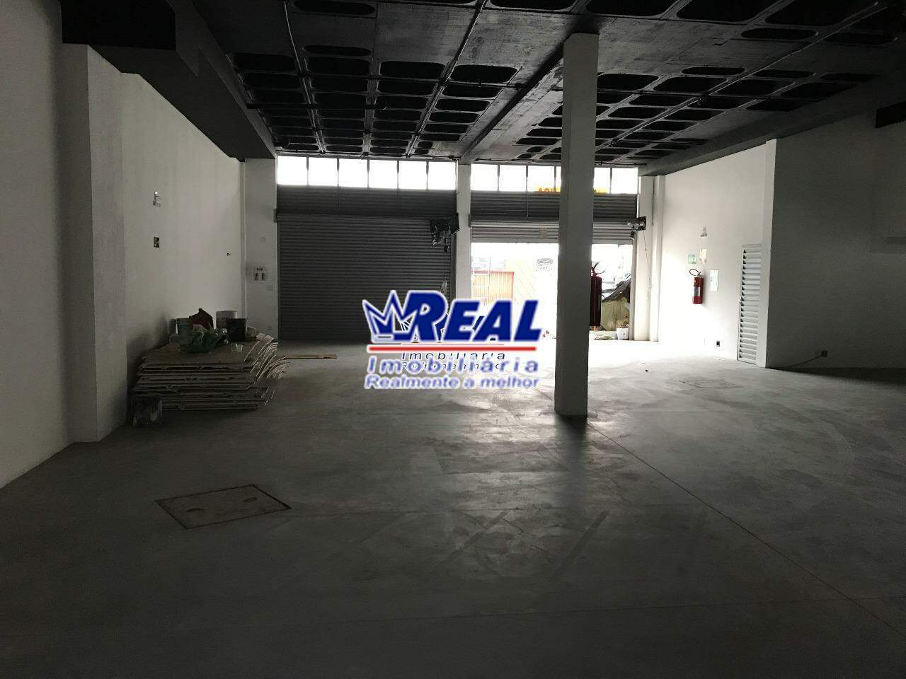 Loja com 290m² de área interna, área externa, pé direito quatro metros, um banheiro, área para estacionamento na frente.