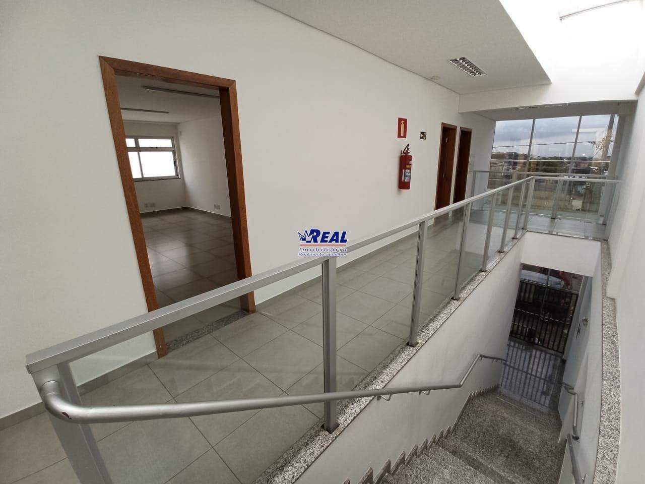 Andar com +/- 218m² de área interna, com seis salas, sendo quatro salas com área externa, um banheiro. Corrimão da escada em inox, janelas blindex em todas as salas.